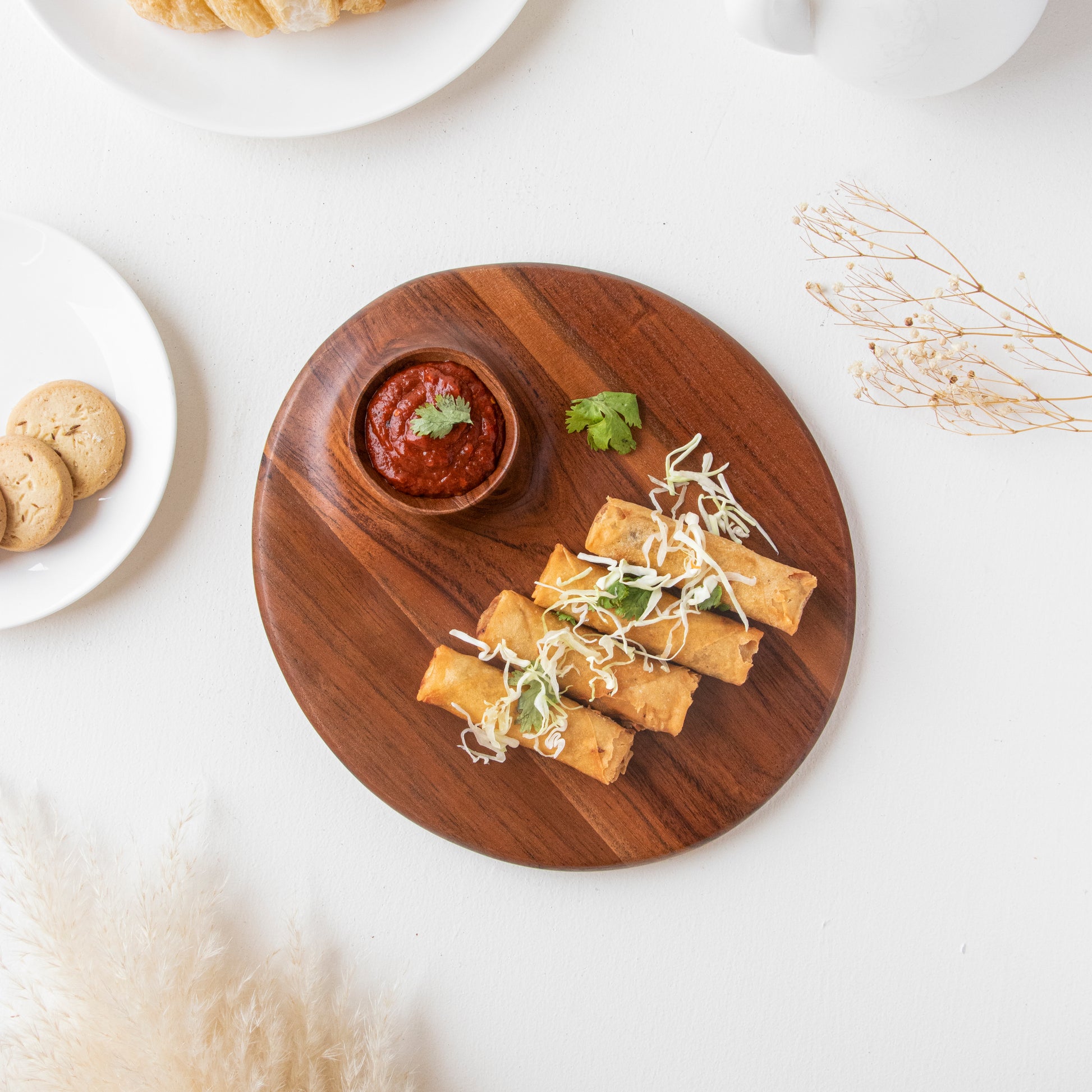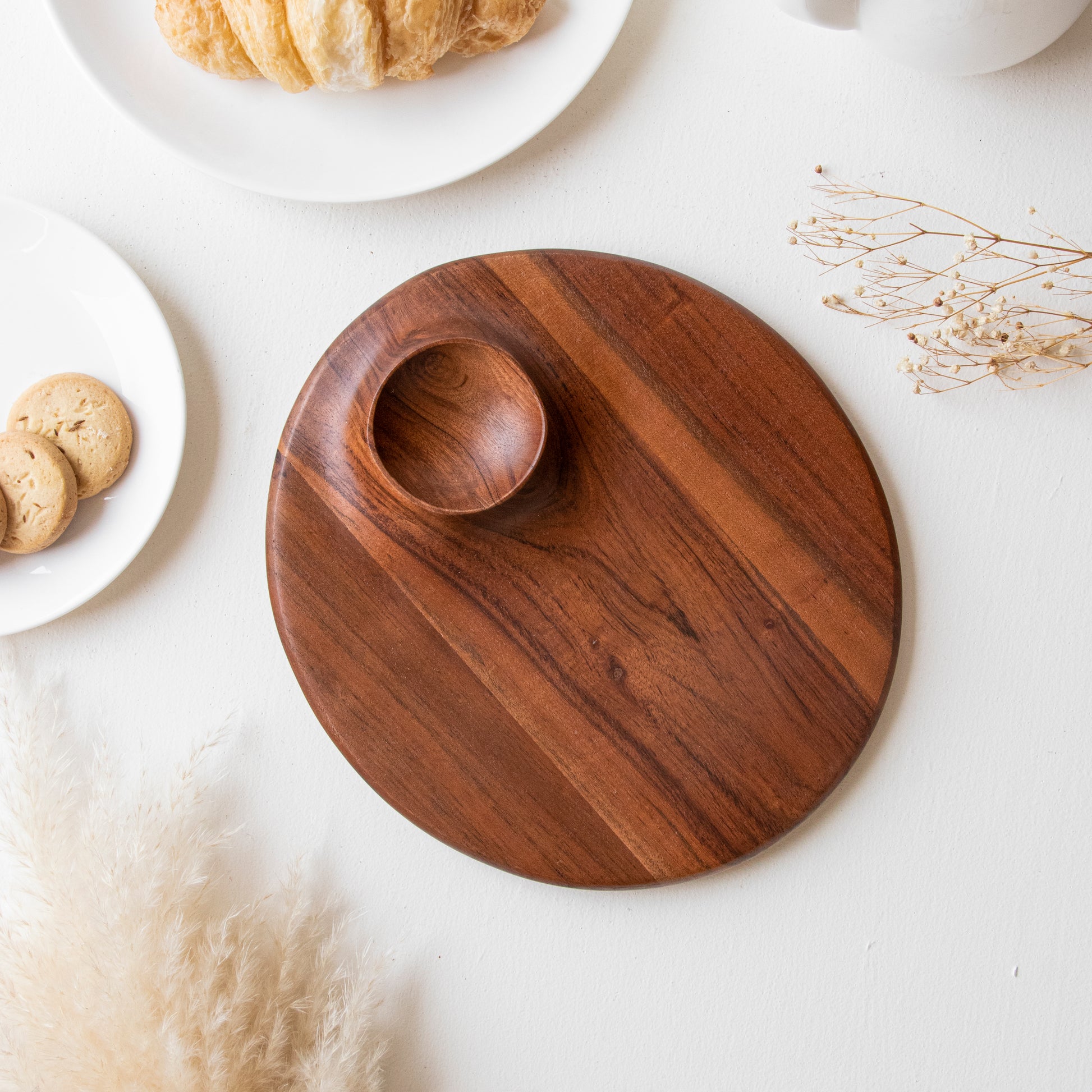 - Mahogany Oval Plattter With Dip- 27*25*3 CM